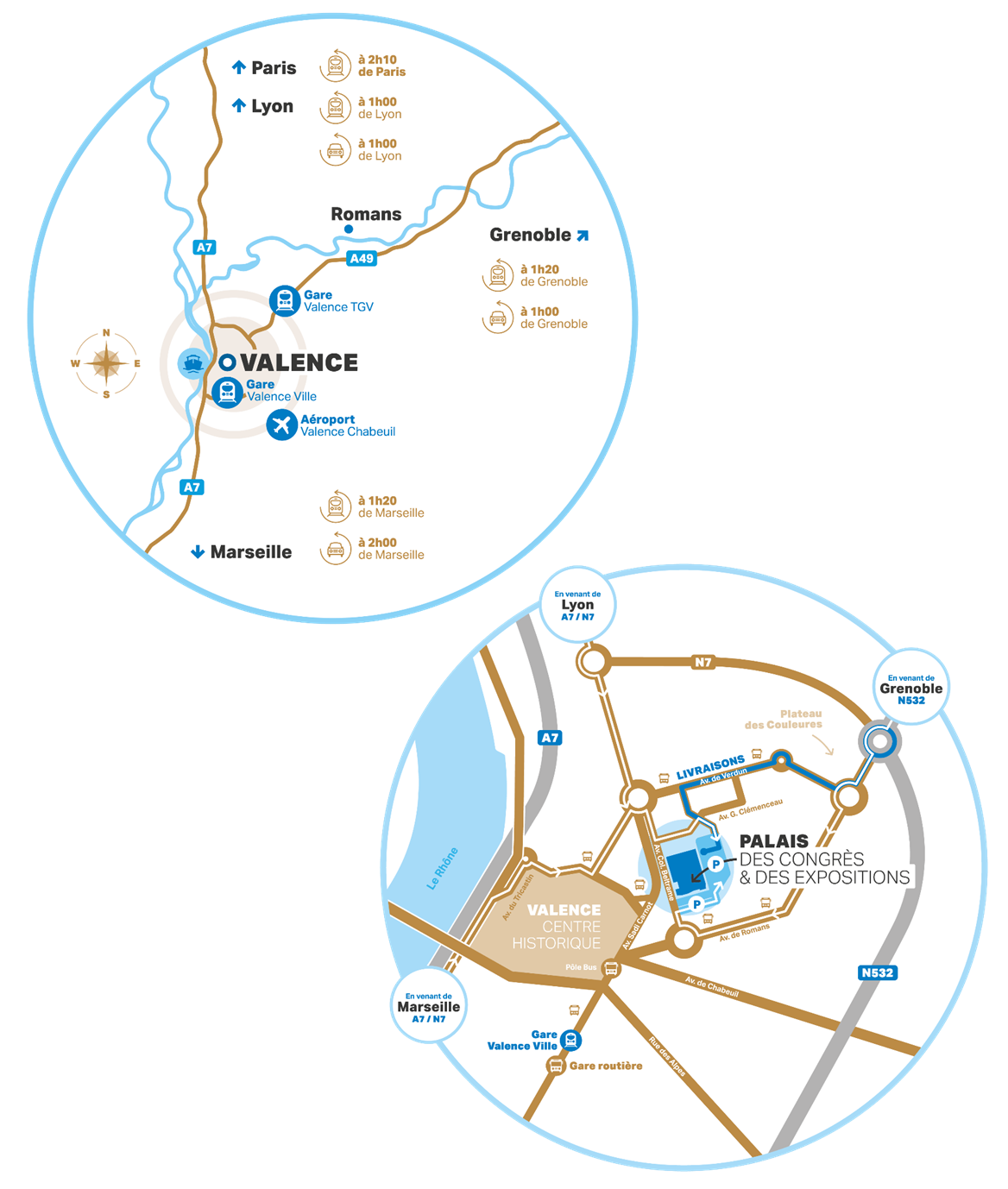Paris : 2h10 – Lyon : 25 min –